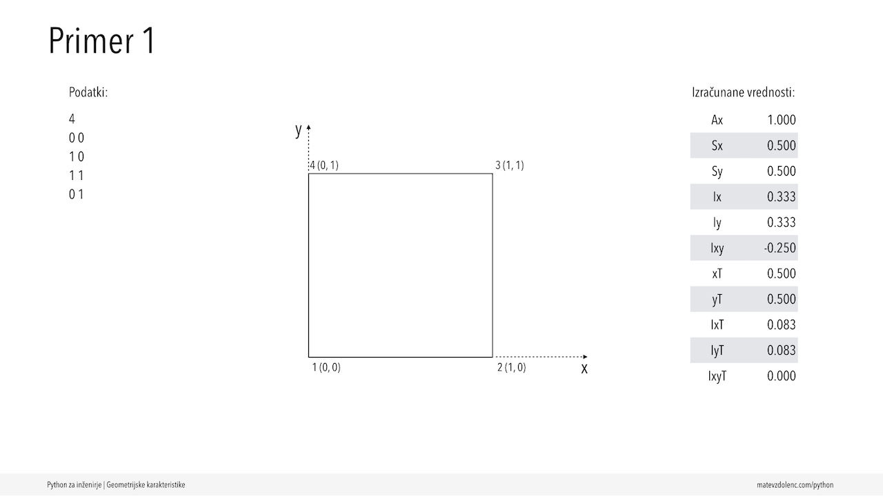 Program za izračun geometrijskih karakteristik poligonalnih prerezov. Uporaba seznamov in for zanke.